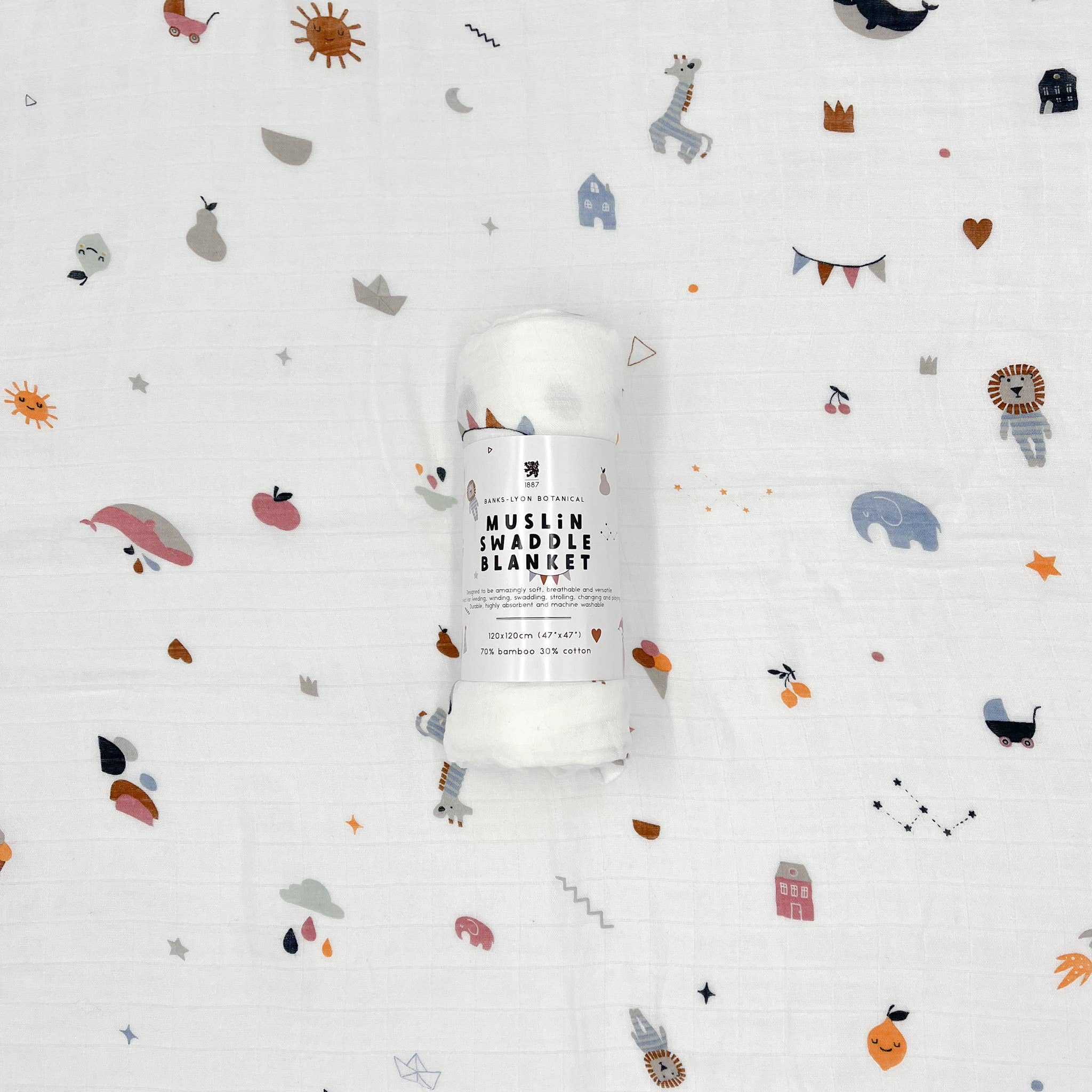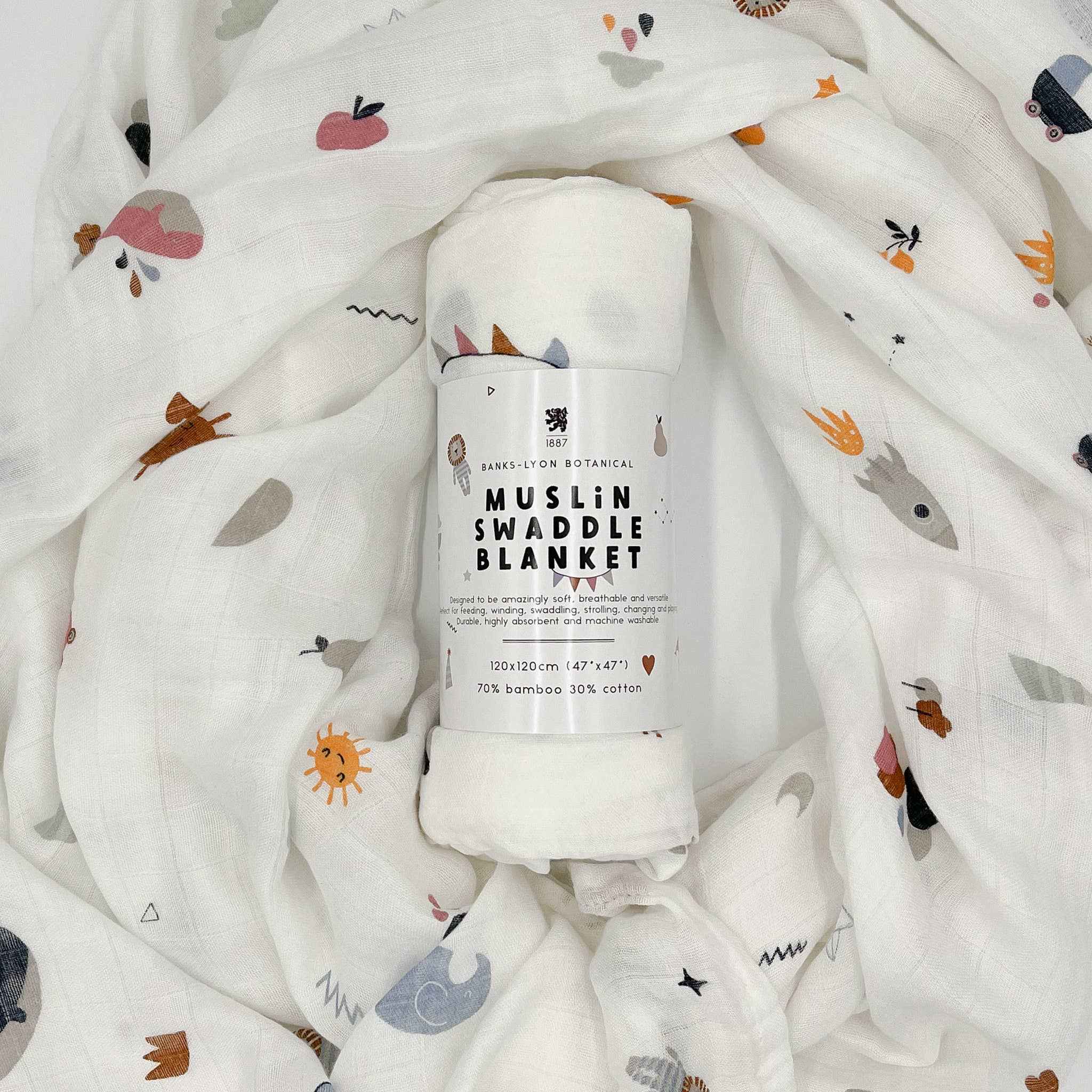Wrap your little one in comfort with our super soft bamboo, baby muslin swaddle blanket, now in the new signature Banks-Lyon Baby print. A changing bag essential and the perfect newborn gift, this blanket is designed with both baby and parent in mind.