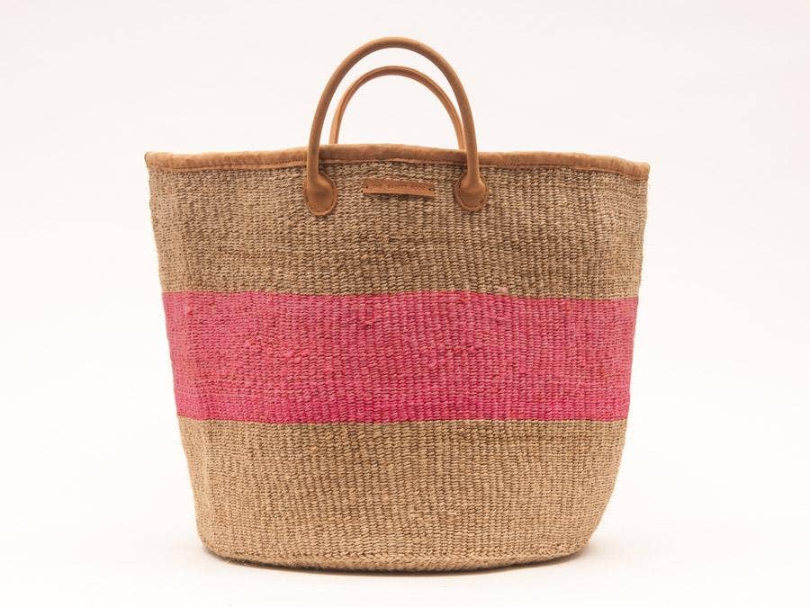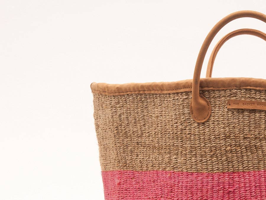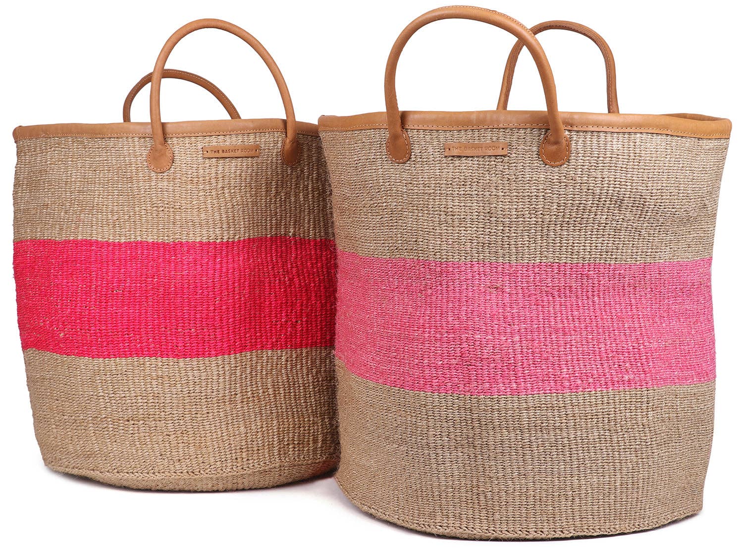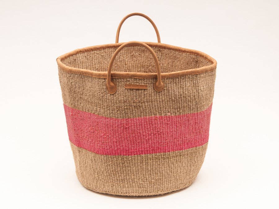 KITAMBAA Handwoven Sisal Laundry Basket – Pink & Natural
