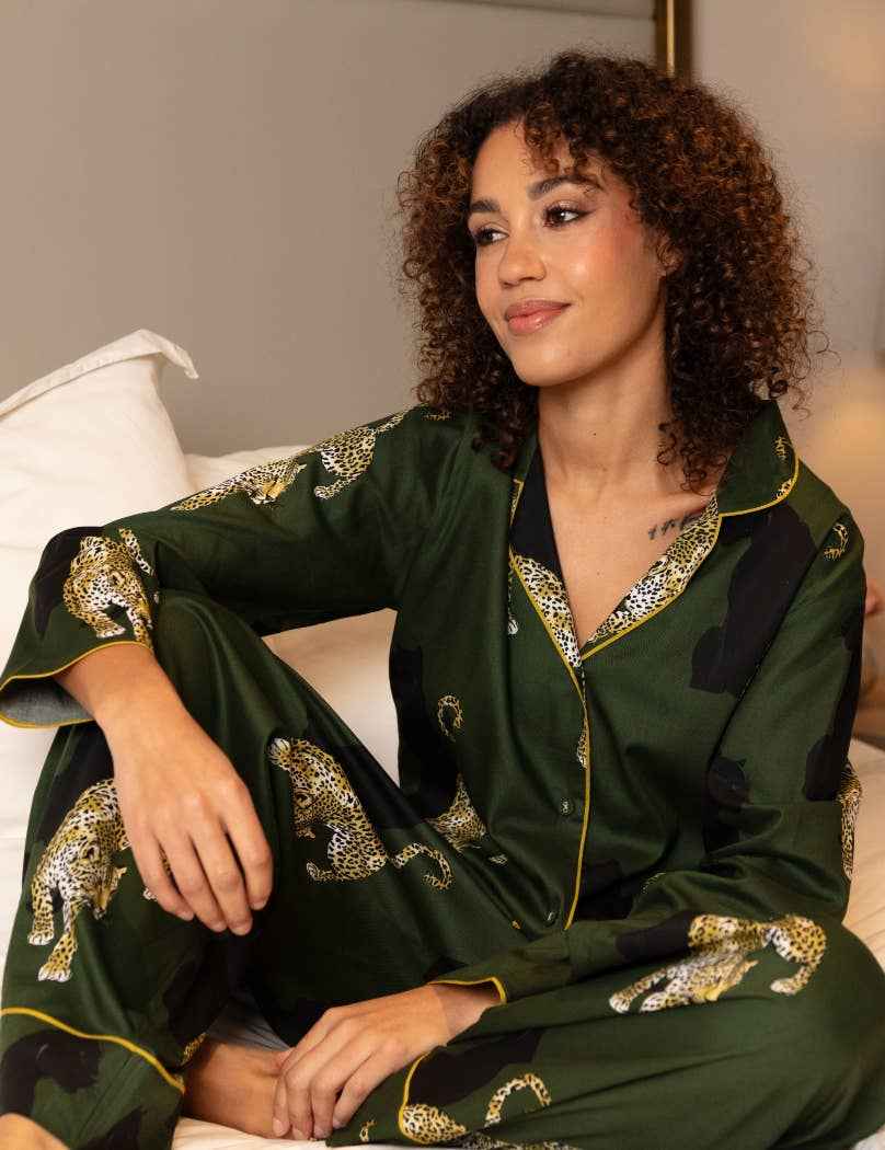 Olive Leopard Print Pyjama Set