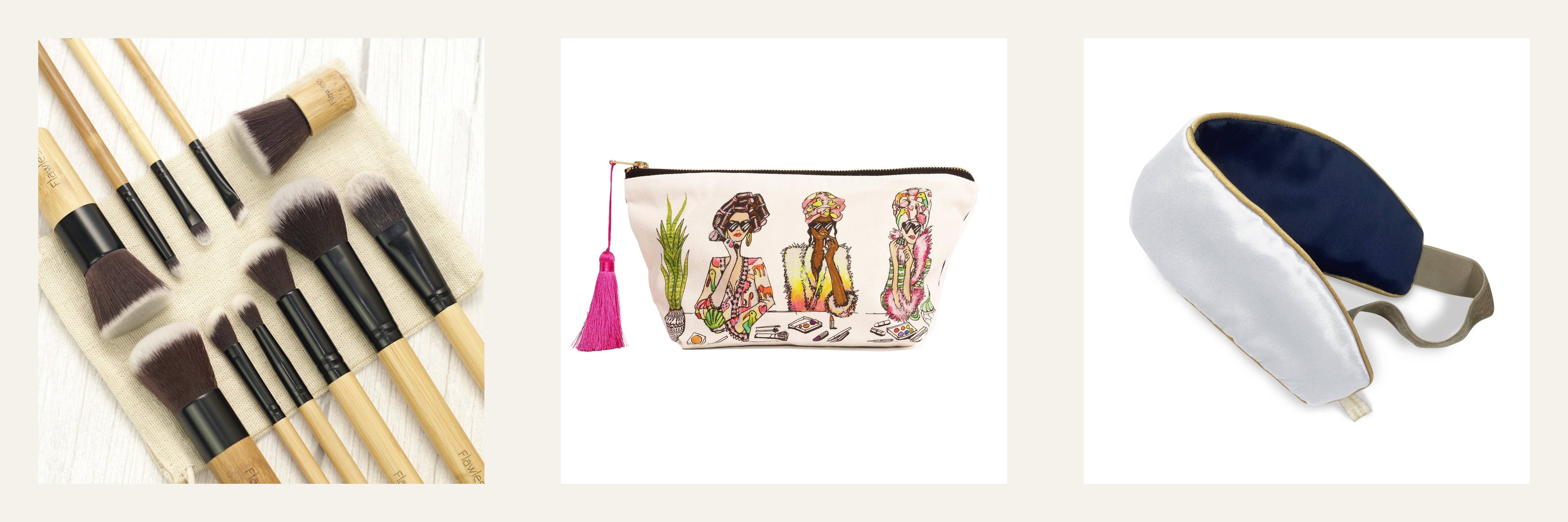 Eco Makeup Bag, Vegan Brush Set and Organic Silk Headband Gift Bundle