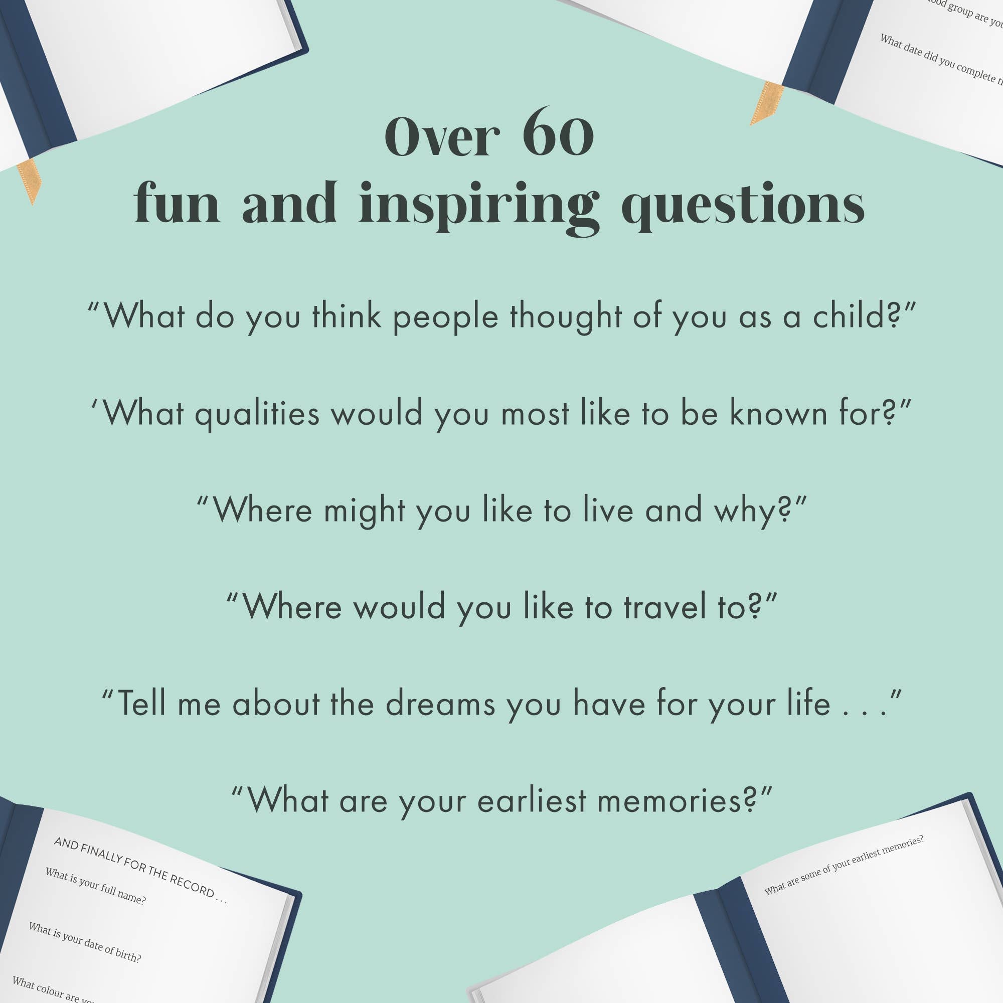 • 60 thoughtful prompts to inspire reflection and storytelling