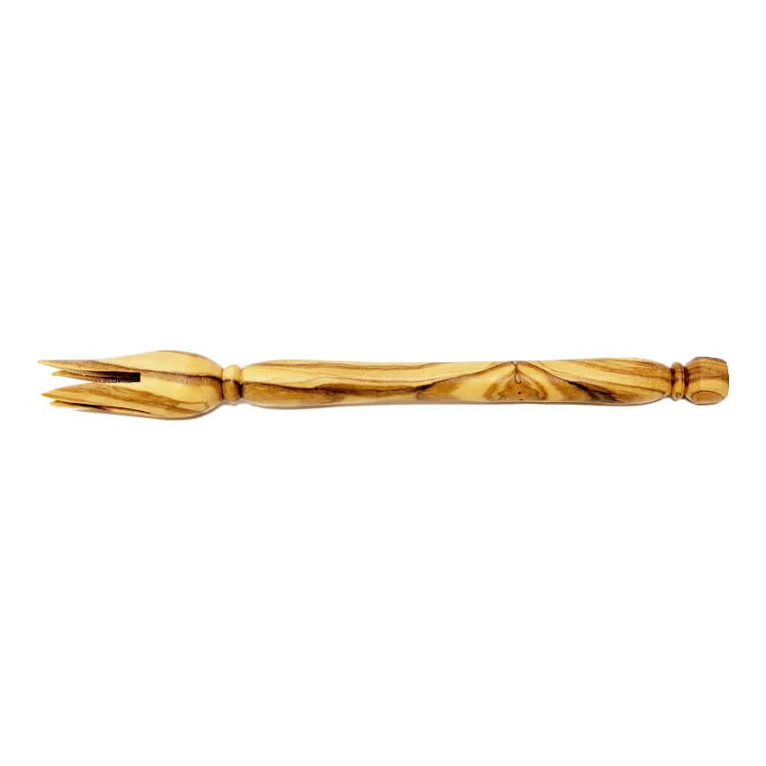 Because olive wood is often made from the prunings and retired trees of olive groves, it’s a naturally sustainable material, turning what would otherwise be waste into long-lasting, functional beauty. With a little care, this olive pick will age gracefully, becoming a small but treasured part of your kitchen ritual.