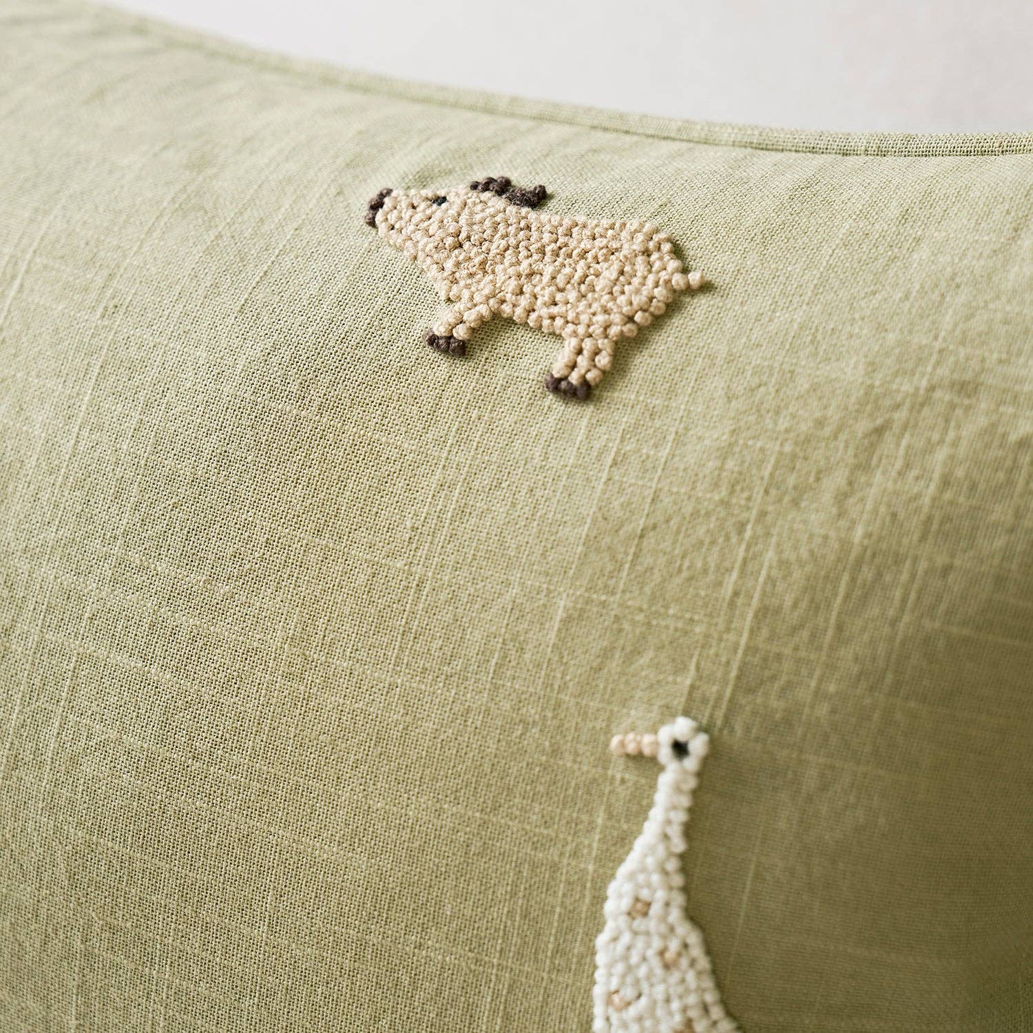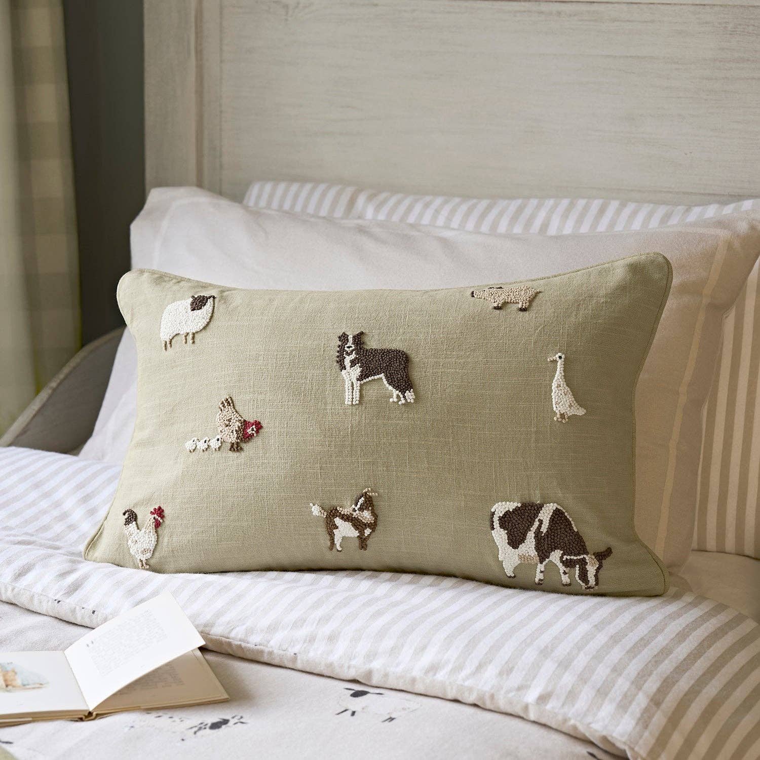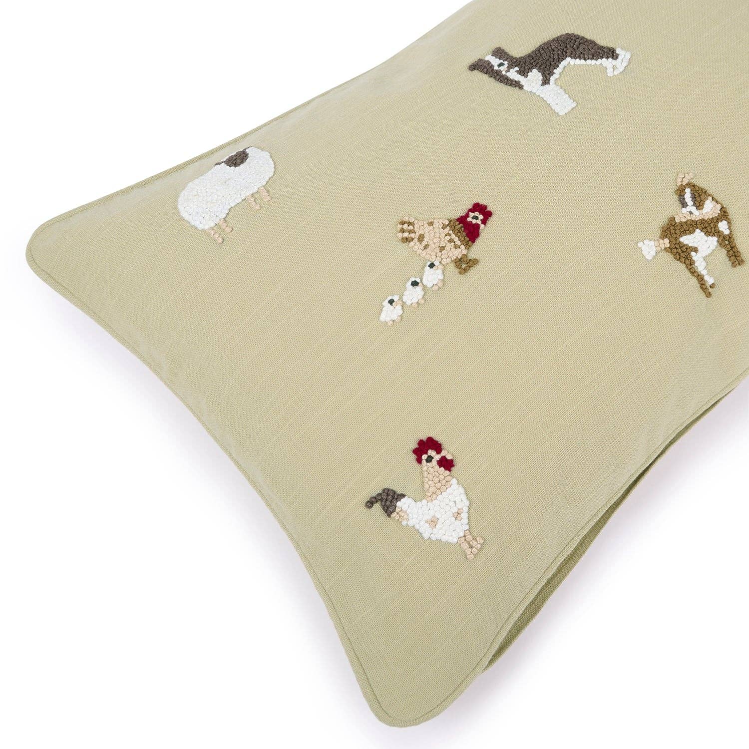 • Hand-embroidered farmyard design, making each cushion beautifully unique