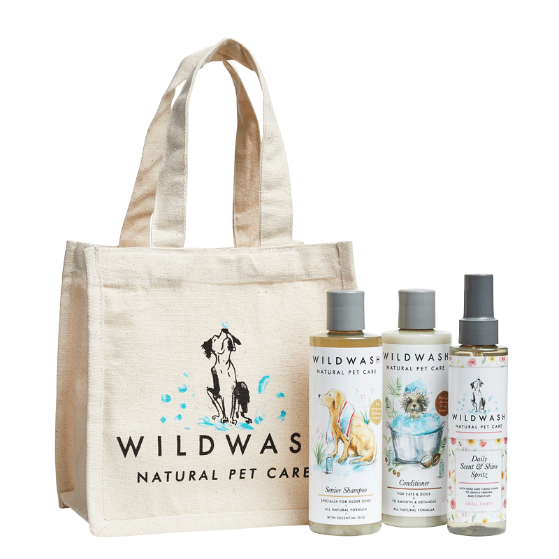 The WildWash Senior Dog Gift Set is designed to soothe, nourish and refresh older dogs with sensitive skin and softer coats.