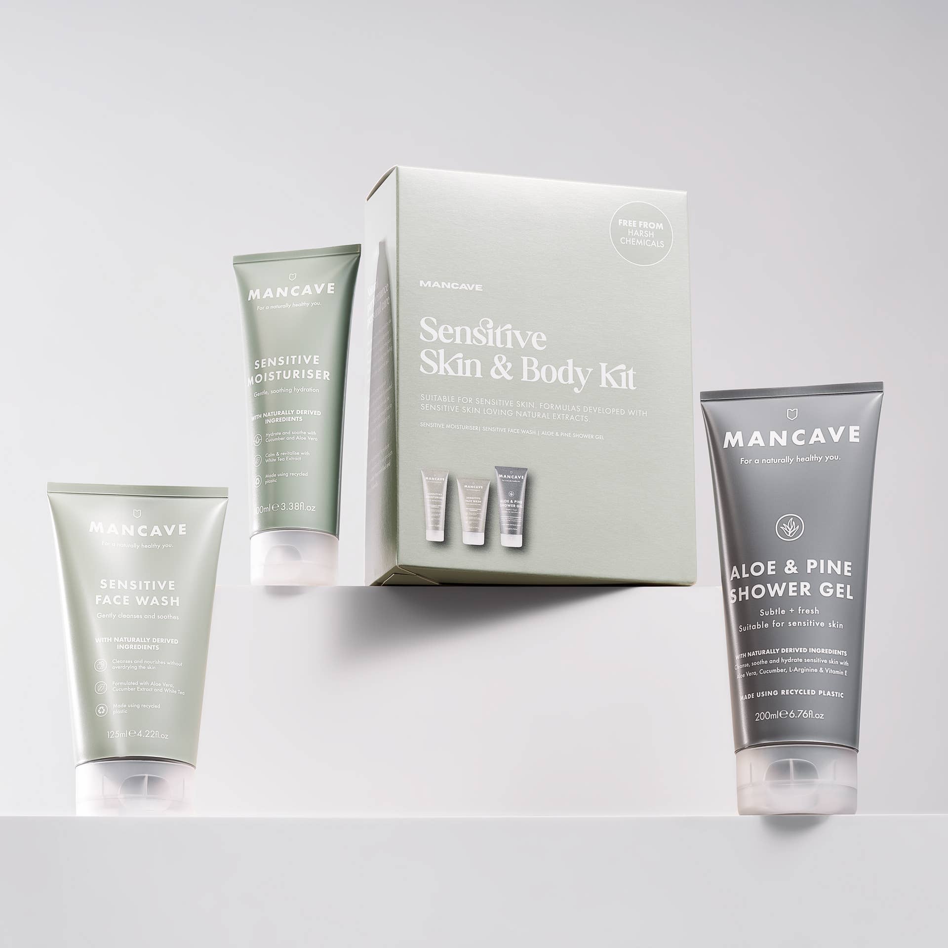 The ManCave Gentle Care Skincare Trio is a thoughtfully formulated set designed to cleanse, soothe and hydrate — without irritation.